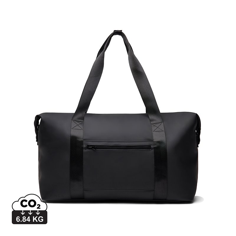 Una bolsa de viaje de fin de semana confeccionada en parte con poliéster reciclado certificado por RCS con un elegante revestimiento de PU. Diseñada para guardar todo lo que necesitas para una escapada de 1 o 2 noches. Simplemente fija tu bolsa a tu trolley con un ingenioso bolsillo con cremallera 2 en 1. Cuenta con cómodas correas de mano para llevarla y una correa de hombro ajustable y desmontable. En el interior hay un bolsillo con cremallera más pequeño para tus artículos esenciales. Certificada por RCS (Recycled Claim Standard), la certificación RCS garantiza que toda la cadena de suministro de materiales reciclados está certificada. El contenido reciclado total se basa en el peso total del producto. Este producto contiene un 20% de poliéster reciclado certificado por RCS.