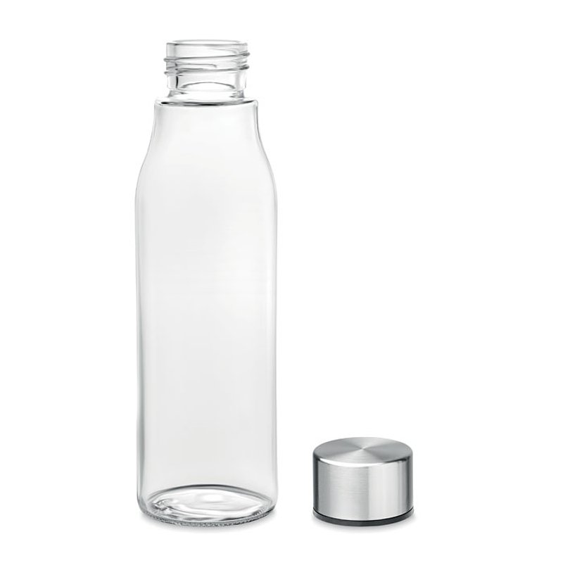 Glass bottle with stainless steel cap. Capacity 500 ml. Not suitable for carbonated drinks. Leak-proof.
