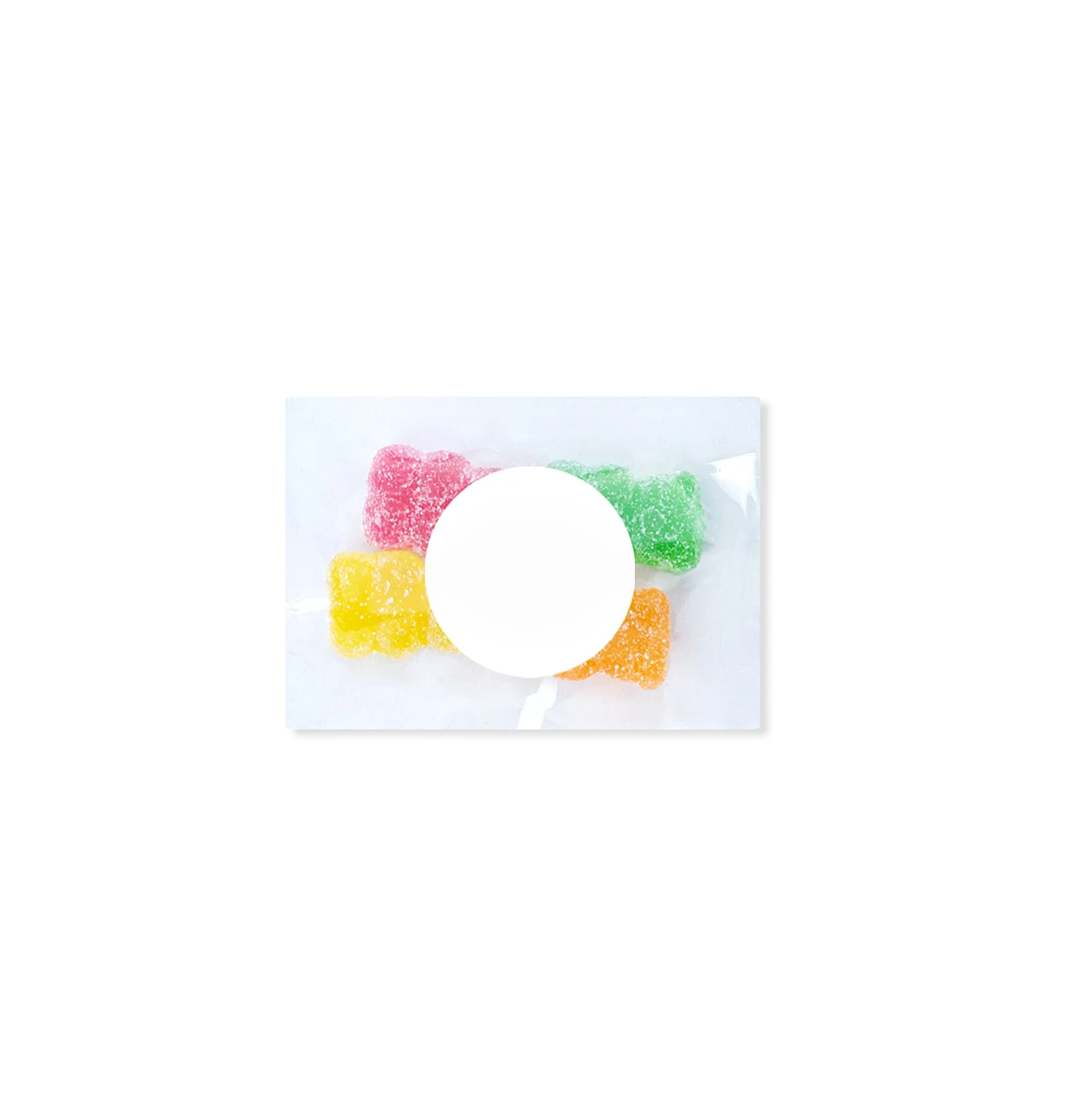 Small bag with 4 customizable gummy bears with high-quality label.