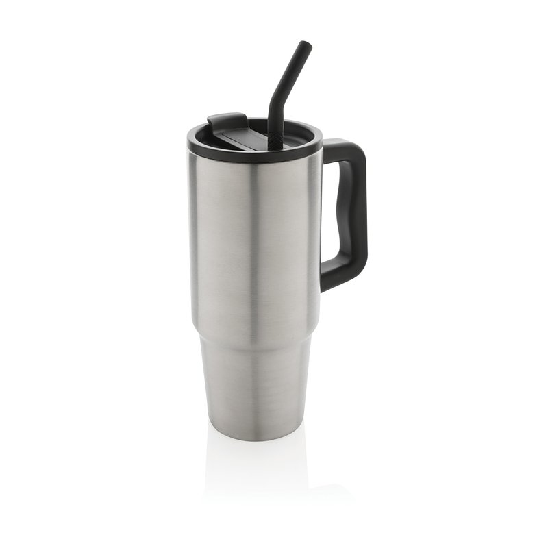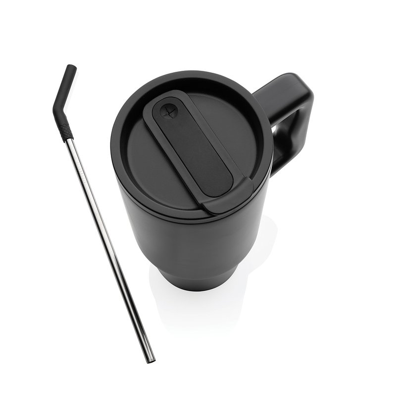 Spacious vessel of generous size but easily transportable. Neither too large nor too small. Its comfortable handle and thin base make it perfect for most cup holders, ensuring that it stays cool whether you're enduring a long day of meetings, conquering a rowing class, or embarking on a trip out of town. Crafted from durable 900 ml recycled stainless steel. The cup is up to the challenge of hydration. Double-wall vacuum insulated, complete with a spill-proof lid, straw, and a silicone straw tip. Suitable for both cold and hot beverages. The screw top lid serves a dual function: offering a comfortable drinking spout or the option to use a straw. Hand wash recommended for optimal care. Made with RCS ensuring a fully certified recycled material supply chain. Total recycled content: 70% based on total weight. BPA free.