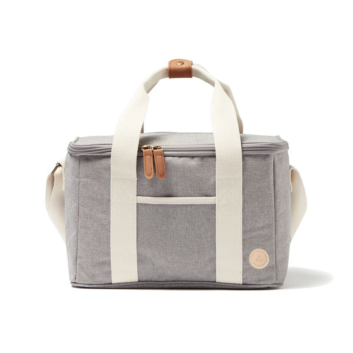 The ultimate cooler basket, tone-on-tone speckled with details in faux leather and cotton. Made with 50% recycled material from PET bottles. There is also a small compartment on the outside of the thermal bag, which also provides space for other items. The thick PEVA padding ensures that the cold is retained for a long time. It is also easy to clean and dry after use. Thanks to the adjustable shoulder strap and double handle, you have several ways to carry the cooler basket.