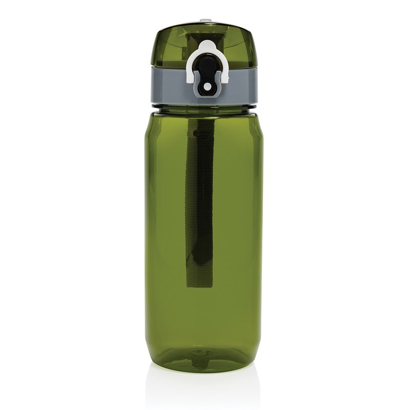 Esta botella de agua RCS RPET es antigoteo y cuenta con una tapa que se puede cerrar con llave y se puede operar con una sola mano. También cuenta con un asa para facilitar su transporte. El cuerpo de la botella está fabricado 100% con RPET certificado RCS. La certificación RCS garantiza una cadena de suministro de materiales reciclados completamente certificada. Lavar a mano únicamente. Este producto es sólo para bebidas frías. Contenido reciclado total: 73% basado en el peso total del artículo. Sin BPA. Capacidad 600ml. Incluye embalaje de regalo kraft certificado FSC®.