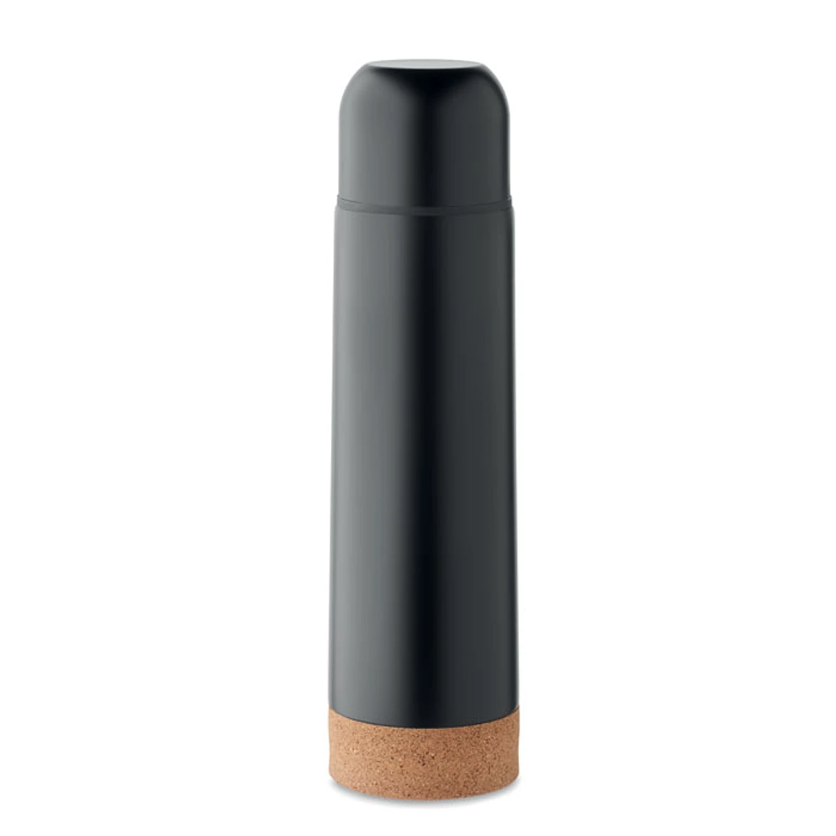 Botella de doble pared aislado al vacío de acero inoxidable reciclado con base de detalle de corcho. Sin fugas. Capacidad: 500 ml. (90% de acero inoxidable reciclado y 10% de acero inoxidable).