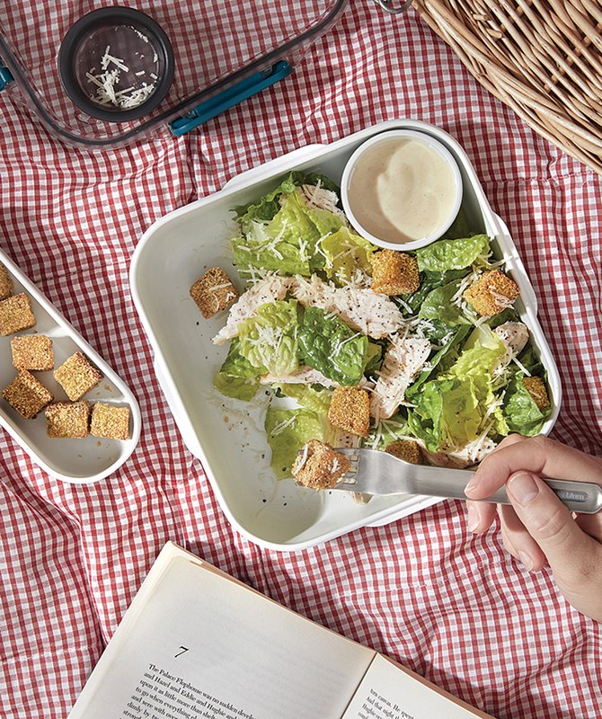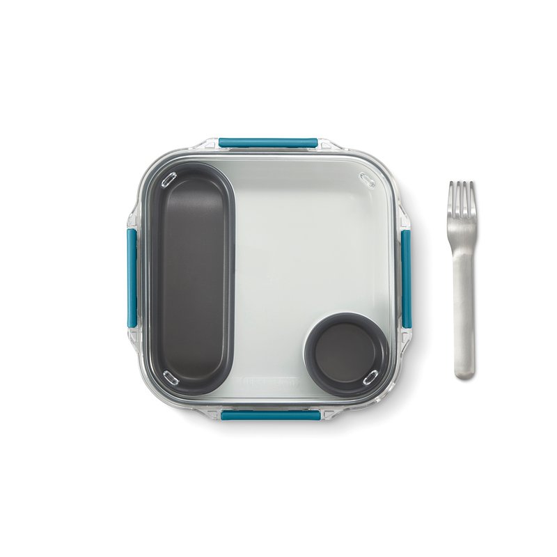 Inspirada en el primer diseño de fiambrera de Black+Blum. Diseñada para parecerse a un tazón de cerámica, la fiambrera incluye un recipiente interior, así como una cacerola antigoteo con un área decorativa en la tapa y un tenedor de acero inoxidable. Apto para microondas y lavavajillas, excepto su tapa de tritan.