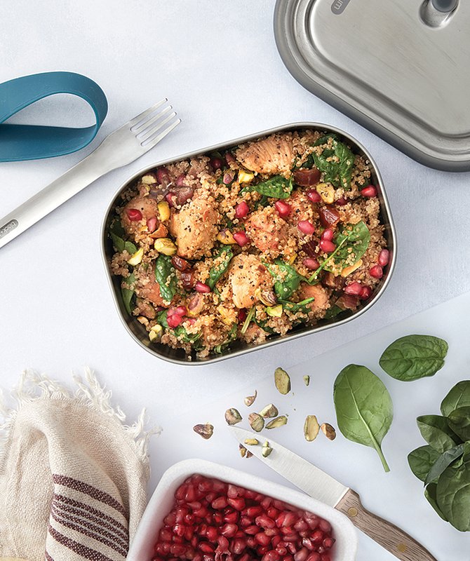 La primera fiambrera de acero inoxidable verdaderamente antigoteo. Es multifuncional 3 en 1 que te permite transportar tu almuerzo, cocinar platos en el horno e incluso guardar comidas precocinadas en el congelador. Fabricado en acero inoxidable duradero, este diseño es perfecto para llevar tus creaciones culinarias con estilo. Se remonta a las antiguas cantinas militares o de camping de antaño, pero tiene una sensación moderna y minimalista que envejecerá maravillosamente. La válvula de silicona crea un cierre sellado al vacío seguro, el divisor deslizante te permite separar el contenido con facilidad y el tenedor + soporte se agregan para mayor comodidad. Base apta para lavavajillas+tenedor. La tapa y la correa se pueden lavar a mano únicamente.