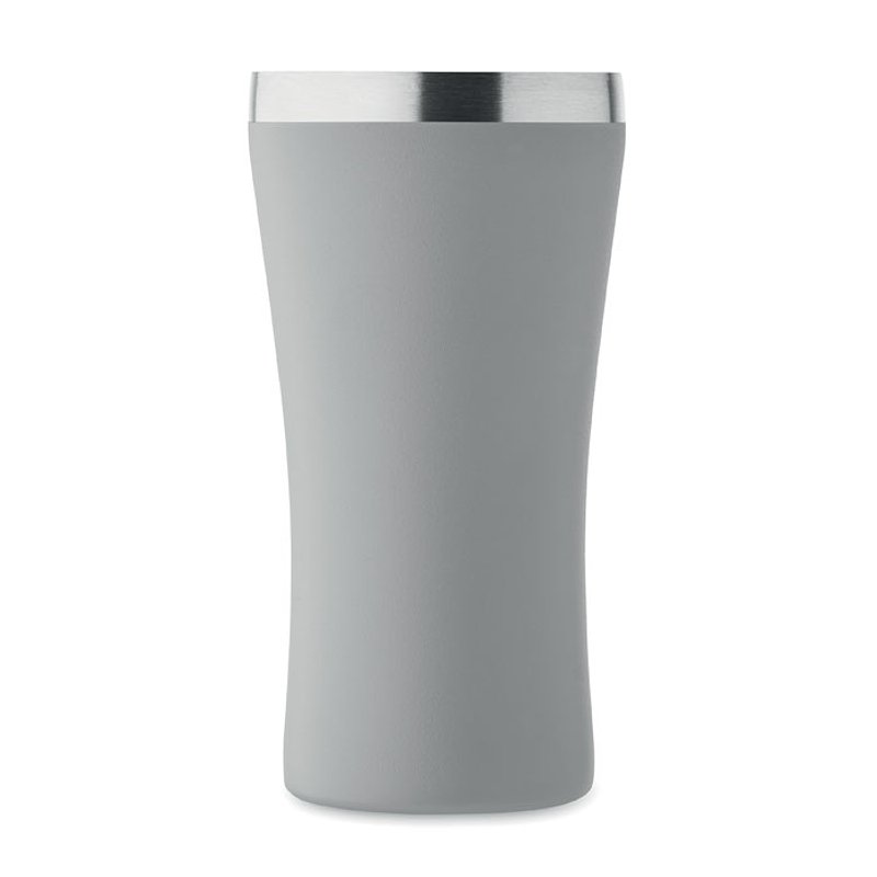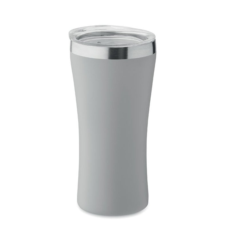 Vaso pequeño de doble pared con aislamiento al vacío de acero inoxidable reciclado (90% de acero inoxidable reciclado y 10% de acero inoxidable) y tapa con orificio para beber de PP transparente. Capacidad: 160 ml.