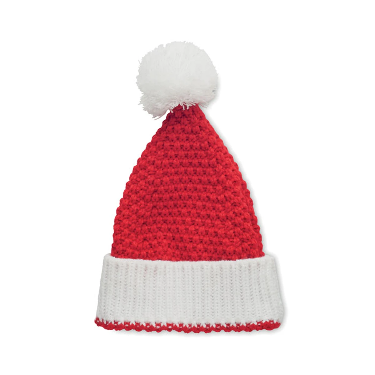 Gorro de punto navideño con puño y borla hecho en suave acrílico elástico.