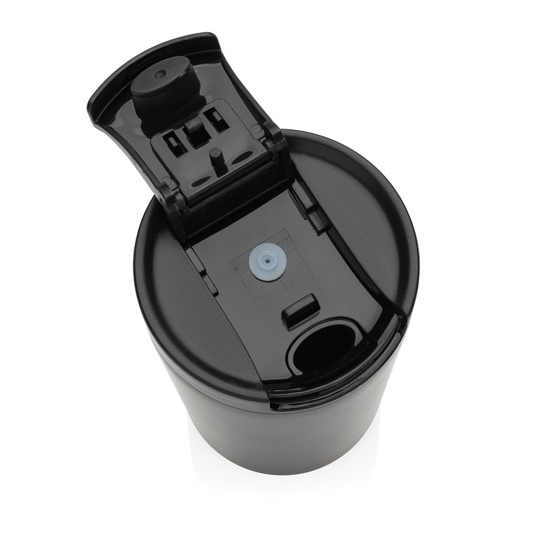 Esta taza con cerradura antigoteo al vacío de doble pared tiene el tamaño perfecto para tu bebida. Su tapa abatible sellada antigoteo está diseñada para abrir/cerrar fácilmente y usar sobre la marcha. El aislamiento al vacío mantiene las bebidas calientes hasta por 5 horas y frías hasta por 15 horas. Fabricado con materiales reciclados certificados RCS (Recycled Claim Standard). La certificación RCS garantiza una cadena de suministro completamente certificada de los materiales reciclados. Contenido reciclado total: 80% basado en el peso total del artículo. Capacidad 300ml. Sin BPA y únicamente lavar a mano.