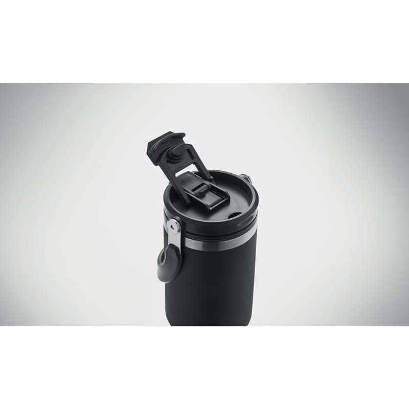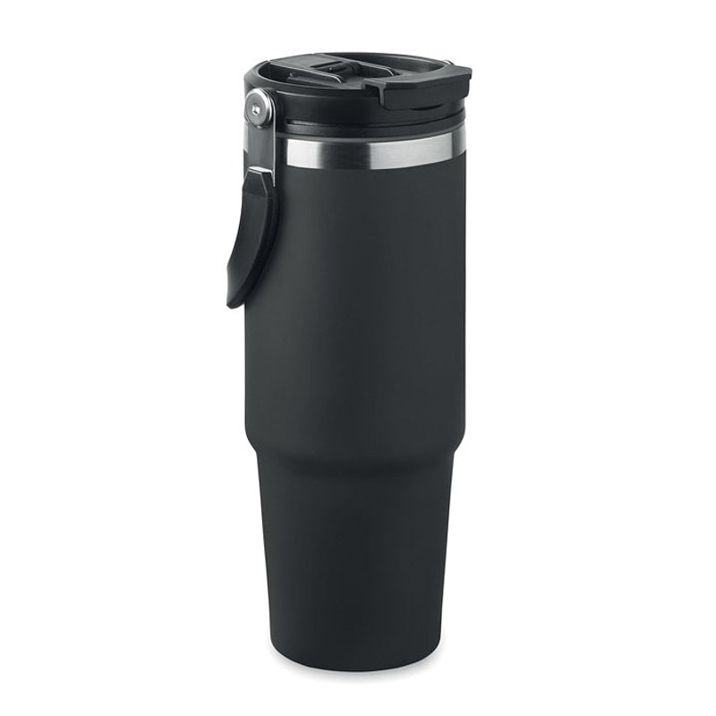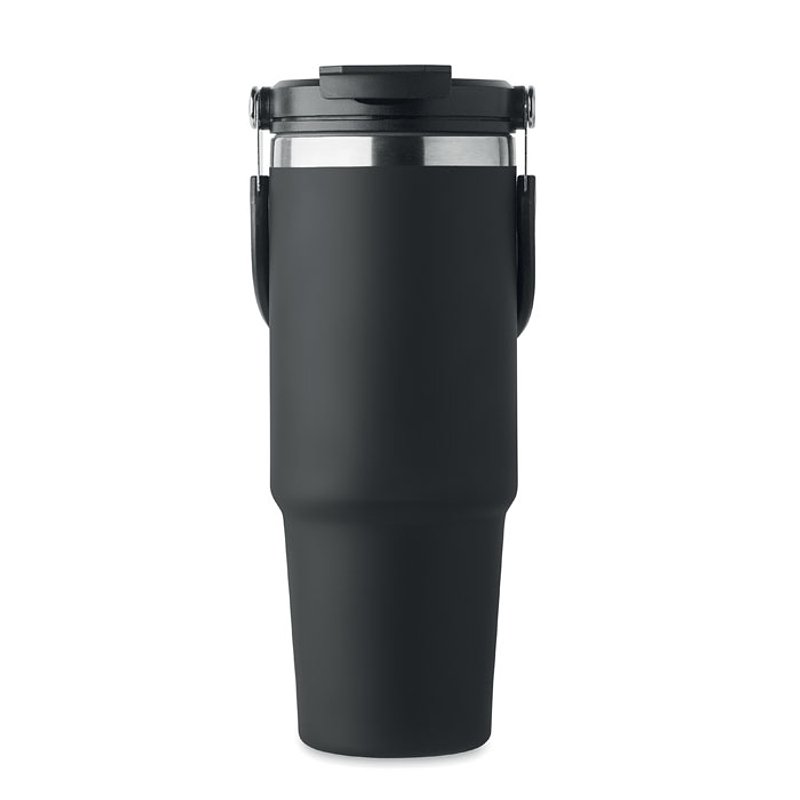 Vaso de acero inoxidable reciclado de doble pared (90% de acero inoxidable reciclado y 10% de acero inoxidable) con tapa y pajita interior, boquilla plegable y abertura directa para beber . Capacidad 850 ml.