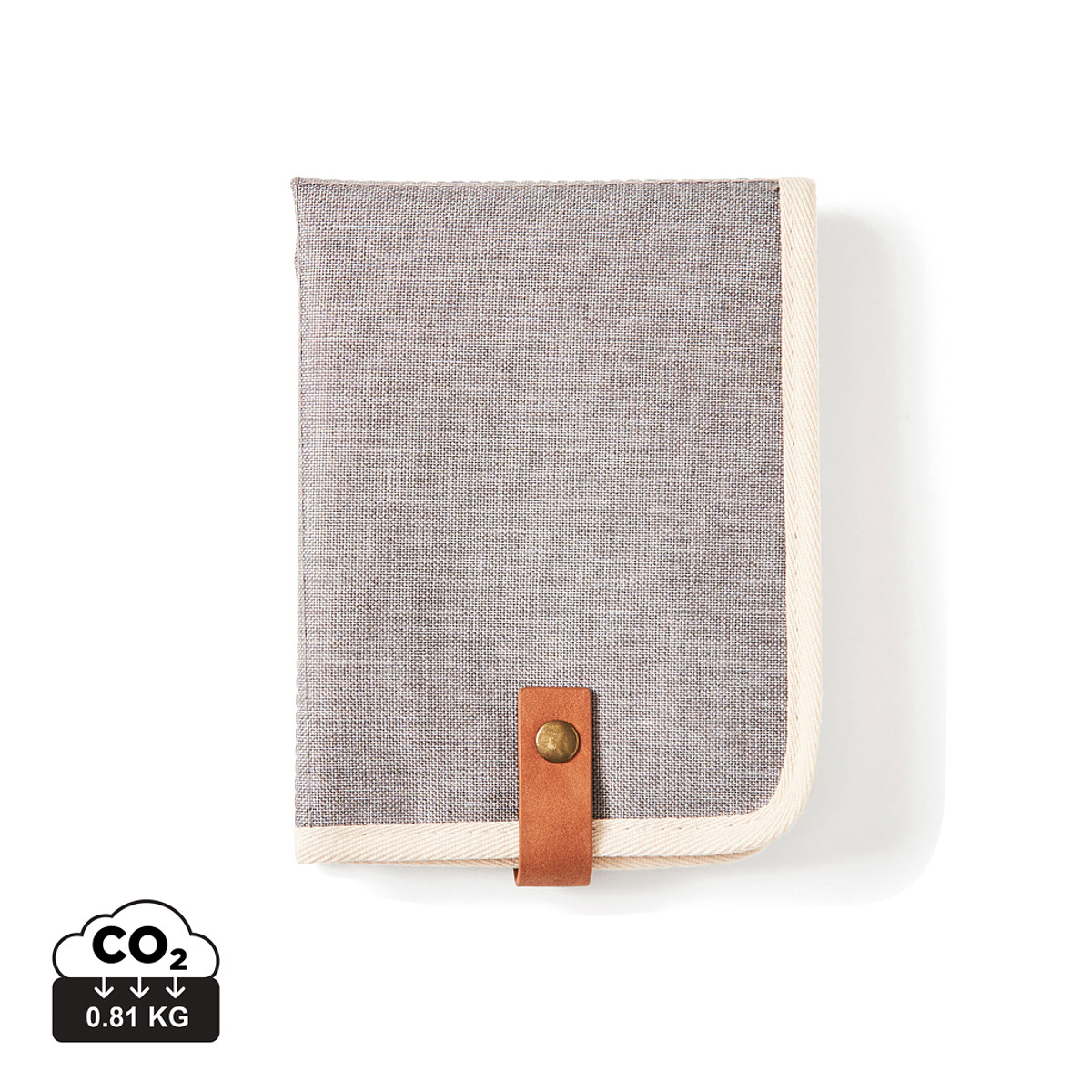 Práctico cojín de asiento plegable fabricado con un 50% de material reciclado de botellas PET. Manténgalo plegado con una correa de piel sintética y un cierre a presión. La correa se puede sujetar cómodamente a su mochila.